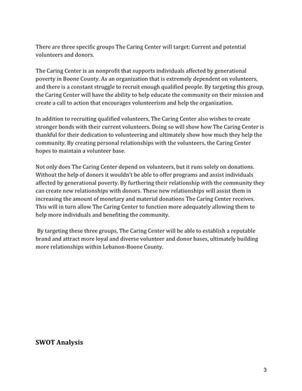 My team performed more research on The Caring Center to evaluate their current communications efforts and make strategic communications recommendations based on this research.
